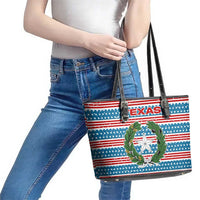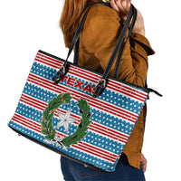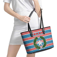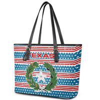 Texas Christmas Leather Tote Bag with Blue and Red Striped Festive Pattern Lone Star and Santa Motif