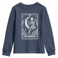 The Knitter Skeleton Youth Sweatshirt Knitting Lover Gift Tarot Card Graphic