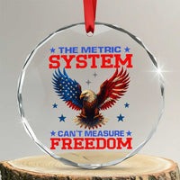 Discover the perfect blend of elegance and durability with the The Metric System Can't Measure Freedom Crystal Glass Ornament Funny Patriotic Eagle 4th of July USA Flag from Wonder Print Shop. Designed for those who appreciate meaningful keepsakes, this glass ornament enhances both personal spaces and gifting moments.