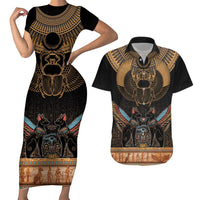 The Scarab Beetle Couples Matching Short Sleeve Bodycon Dress and Hawaiian Shirt Egyptian Hieroglyphs Alphabet