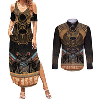 The Scarab Beetle Couples Matching Summer Maxi Dress and Long Sleeve Button Shirt Egyptian Hieroglyphs Alphabet