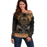 The Scarab Beetle Off Shoulder Sweater Egyptian Hieroglyphs Alphabet