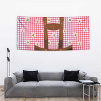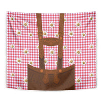 Traditional German Costume - Lederhosen Tapestry Red Plaid Pattern with Edelweiss Flowers