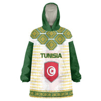 Tunisia Flag Traditional Tribal Pattern Green and White Pullover Wearable Blanket Hoodie with National Crest and Emblem TS04