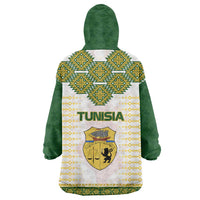 Tunisia Flag Traditional Tribal Pattern Green and White Pullover Wearable Blanket Hoodie with National Crest and Emblem