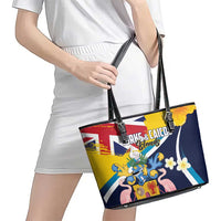 Turks and Caicos Islands Leather Tote Bag Coat Of Arms Tropical Flowers