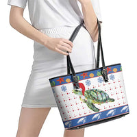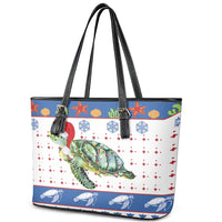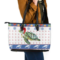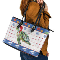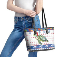 Turtle Xmas Leather Tote Bag Green Sea Turtle Merry Christmas