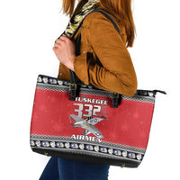 Tuskegee Red Tails Airmen Christmas Leather Tote Bag P-51 Mustang 332nd Fighter Group LT15