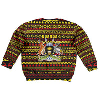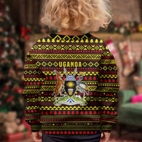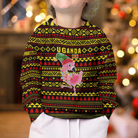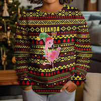 Uganda Christmas Kid Ugly Christmas Sweater with Flamingo Lights Uganda Flag and Black Red Yellow Tribal Pattern Design TS04