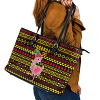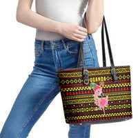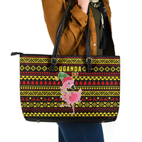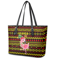 Uganda Christmas Leather Tote Bag with Flamingo Lights Uganda Flag and Black Red Yellow Tribal Pattern Design