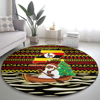 Uganda Christmas Round Carpet with Santa in Canoe Christmas Tree Uganda Map Flag and Black Red Yellow Tribal Pattern Design