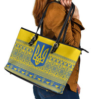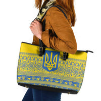 Ukraine Trident Christmas Leather Tote Bag Vyshyvanka Patterns