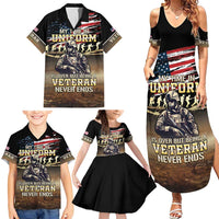 United States Veterans Day Family Matching Summer Maxi Dress and Hawaiian Shirt Thank You Veterans Proud US Flag