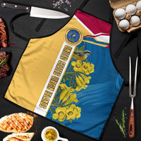 Order your United States Virgin Islands Apron with Blue Yellow Floral Design and Government Seal Bird by Wonder Print Shop today — because great cooking deserves great gear.