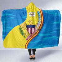 United States Virgin Islands Hooded Blanket with Blue Yellow Wave Design and Island Map Bird