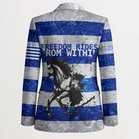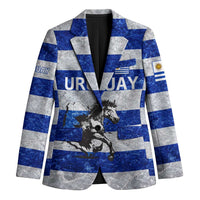 Uruguay Blazer with Wild Horse Illustration Blue Gray Striped
