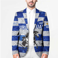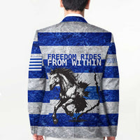 Uruguay Blazer with Wild Horse Illustration Blue Gray Striped TS04