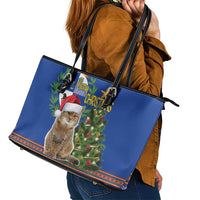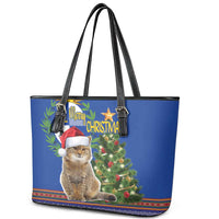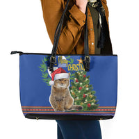 Uruguay Christmas Leather Tote Bag Pampas Cat With Folk Pattern