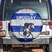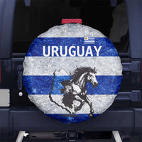 Uruguay Spare Tire Cover with Wild Horse Illustration Blue Gray Striped