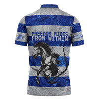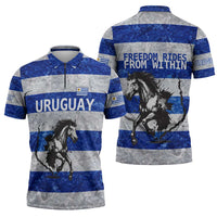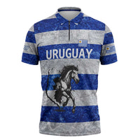 Ready to refresh your wardrobe? Grab your Uruguay Zipper Polo Shirt with Wild Horse Illustration Blue Gray Striped by Wonder Print Shop today and enjoy versatile style and all-day comfort.