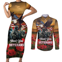 US Veterans Day American Army Couples Matching Short Sleeve Bodycon Dress and Long Sleeve Button Shirt With Poppy Flowers