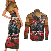 US Veterans Day American Army Couples Matching Short Sleeve Bodycon Dress and Long Sleeve Button Shirt With Poppy Flowers LT18