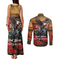 US Veterans Day American Army Couples Matching Tank Maxi Dress and Long Sleeve Button Shirt With Poppy Flowers LT18