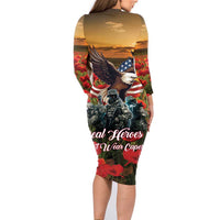 US Veterans Day American Army Family Matching Long Sleeve Bodycon Dress and Hawaiian Shirt With Poppy Flowers LT18