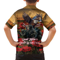 US Veterans Day American Army Family Matching Off Shoulder Maxi Dress and Hawaiian Shirt With Poppy Flowers LT18