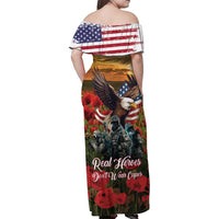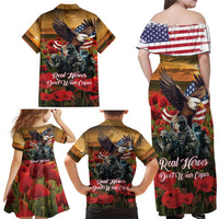 US Veterans Day American Army Family Matching Off Shoulder Maxi Dress and Hawaiian Shirt With Poppy Flowers