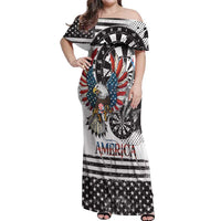 USA Darts Off Shoulder Maxi Dress American Bald Eagle with Grunge Style