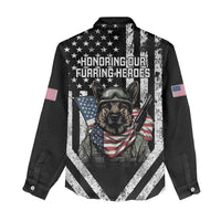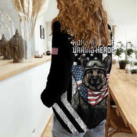 USA National K9 Veterans Day Women Casual Shirt Honoring Our Furring Heroes
