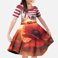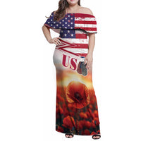 USA Veterans Day Family Matching Off Shoulder Maxi Dress and Hawaiian Shirt Poppy Flowers With Flag Grunge LT18