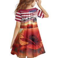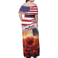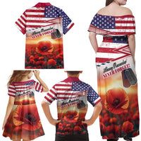 USA Veterans Day Family Matching Off Shoulder Maxi Dress and Hawaiian Shirt Poppy Flowers With Flag Grunge