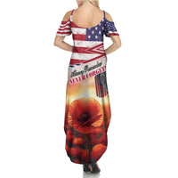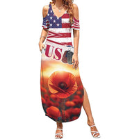 USA Veterans Day Family Matching Summer Maxi Dress and Hawaiian Shirt Poppy Flowers With Flag Grunge LT18