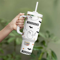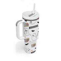 ute Ghost Cat Reading Tumbler With Handle Funny Reader Halloween Bookish Cat Mom Gift TB10
