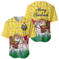 Venezuela Christmas Baseball Jersey with Santa on Horse Traditional Outfit Snowflakes and Yellow Plaid