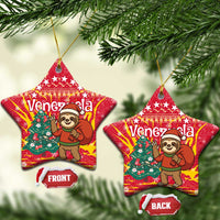Venezuela Christmas Ceramic Ornament with Santa Sloth Christmas Tree Stars and Red Festive