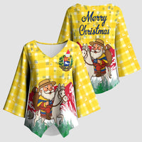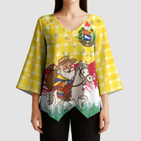 Add a chic touch to your wardrobe with the Venezuela Christmas Kimono Sleeve Blouse with Santa on Horse Traditional Outfit Snowflakes and Yellow Plaid from Wonder Print Shop. Designed for versatility, this V-neck blouse features flowing kimono-style sleeves and a relaxed fit — perfect for both casual and dressy occasions. Crafted with premium polyester fabric, it offers a soft, lightweight feel for all-day comfort.