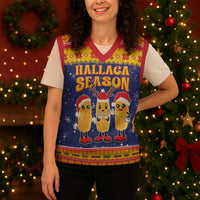 Upgrade your layering game with the Venezuela Christmas Knitted V-Neck Vest Hallaca Season by Wonder Print Shop—a timeless vest designed for versatility and comfort.