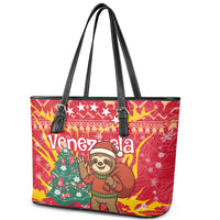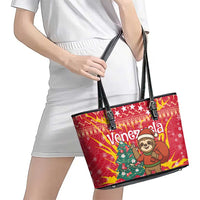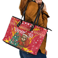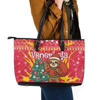Venezuela Christmas Leather Tote Bag with Santa Sloth Christmas Tree Stars and Red Festive