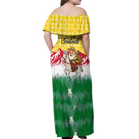 Venezuela Christmas Off Shoulder Maxi Dress with Santa on Horse Traditional Outfit Snowflakes and Yellow Plaid TS04