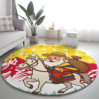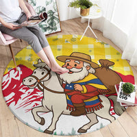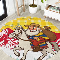 Venezuela Christmas Round Carpet with Santa on Horse Traditional Outfit Snowflakes and Yellow Plaid TS04