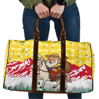 Don’t wait! Elevate your on-the-go style with the Venezuela Christmas Travel Bag with Santa on Horse Traditional Outfit Snowflakes and Yellow Plaid by Wonder Print Shop — order now and be ready for your next adventure.