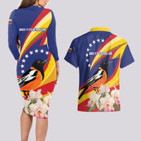Venezuela Independence Day Couples Matching Long Sleeve Bodycon Dress and Hawaiian Shirt Venezuelan Troupial Cattleya Mossiae