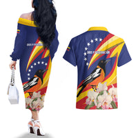 Venezuela Independence Day Couples Matching Off The Shoulder Long Sleeve Dress and Hawaiian Shirt Venezuelan Troupial Cattleya Mossiae