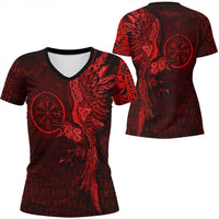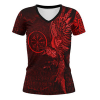 Viking Clothing Vegvisir With Raven Viking Compass V Neck T shirt Red Version RLT12