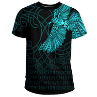 Viking Clothing Viking Odin's Celtic Ravens Cyan Version T Shirt RLT12