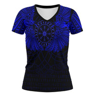Viking Clothing Viking Odin's Celtic Two Ravens Blue Version V Neck T shirt RLT12
