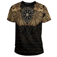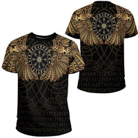 Viking Clothing Viking Odin's Celtic Two Ravens Gold Version T Shirt RLT12
